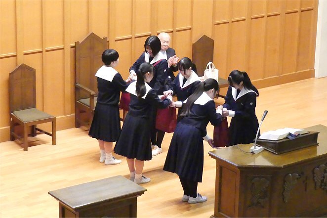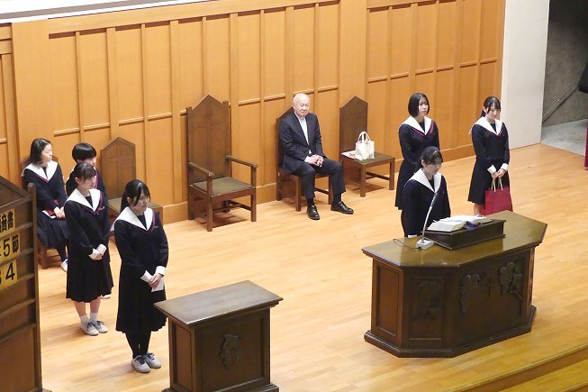 2月24日、朝の礼拝で「スクールリング贈呈式」が行われました。
