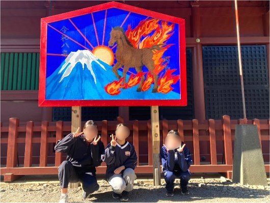 また、年始には部員みんなで浅間神社に初詣に行きました♪