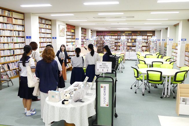 初めて本校を訪れてくださった参加者には校内ツアーを行い、体育館や蔵書数57,000冊を誇る英和自慢の図書館などを見学いただきました。ご参加いただいた皆さま、ありがとうございました。