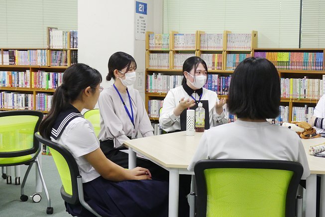 社会福祉士や公認心理士、心理カウンセラーや児童相談所職員を目指す高校2年生が参加し、大学生と直接対話しました。最初に高校生が自己紹介をしながら、心理や福祉の分野に興味を持ったきっかけを話しました。この時間を通じて、自分がどんな進路を目指したいかを改めて考え、大学生との会話がよりリラックスして進む雰囲気になりました。
