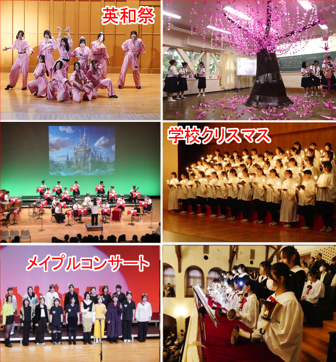 2026.01.09 「英和ムービー」YouTube 動画公開中! 「英和ムービー」のページでは、英和祭(文化祭)やメイプルコンサート、学校クリスマスなどのイベントを紹介した動画を掲載しています。 明るく元気な生徒たちの様子をご覧ください。 →「英和ムービー」