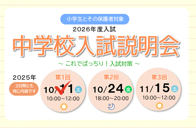 小学生対象 中学校入試説明会 10/24(金)11/15(土)