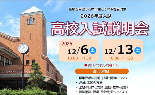 ◆ 高校入試説明会 12/6(土)12/13(土)