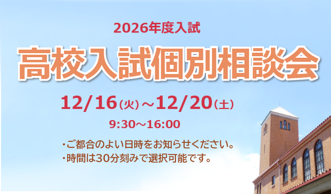 ◆ 高校入試 個別相談会 12/16(火)~12/20(土)